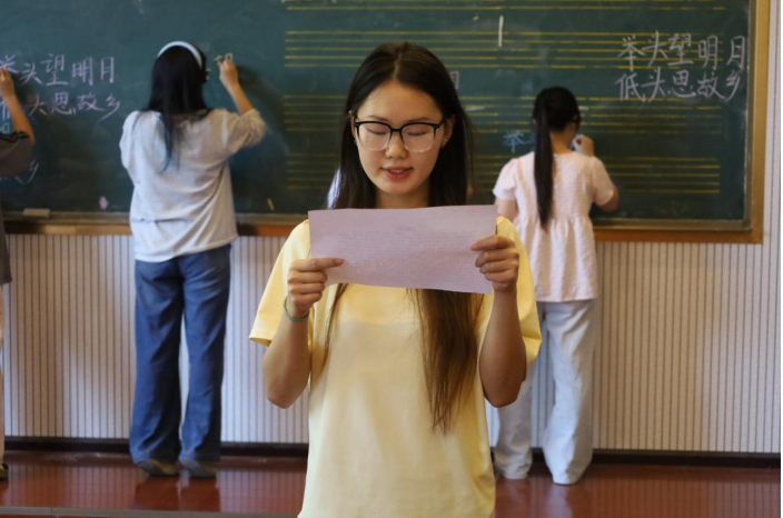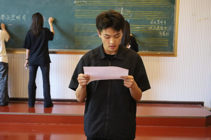 比赛现场,选手们各展所长:毛笔书法挥毫泼墨,一撇一捺间尽显书法韵味;硬笔书法笔锋利落,字迹工整中透着严谨态度;粉笔书法在黑板上快速书写,板书设计既规范又富创意;普通话组则围绕“文化传承”“校园生活”等主题进行朗诵,要求语音标准、情感饱满。