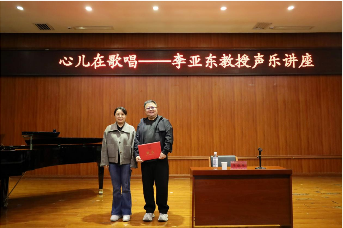 2025年10月22日下午,西安音乐学院李亚东教授应邀走进贵州师范学院音乐舞蹈学院表演厅,以“心儿在歌唱”为主题开展声乐讲座及公开课。本次活动由音乐舞蹈学院主办,是学院切实推进音乐学国家级一流本科专业建设的系列学术活动之一,也为师生搭建了近距离接触声乐领域前沿理念与实用技巧的优质平台。