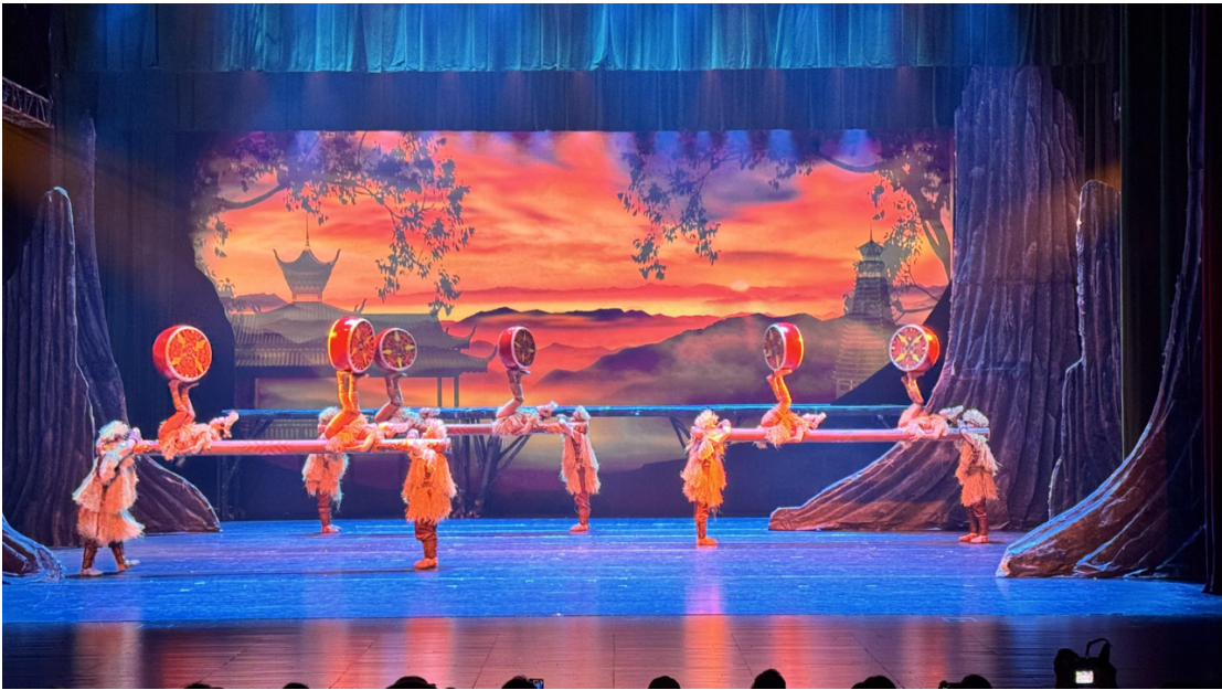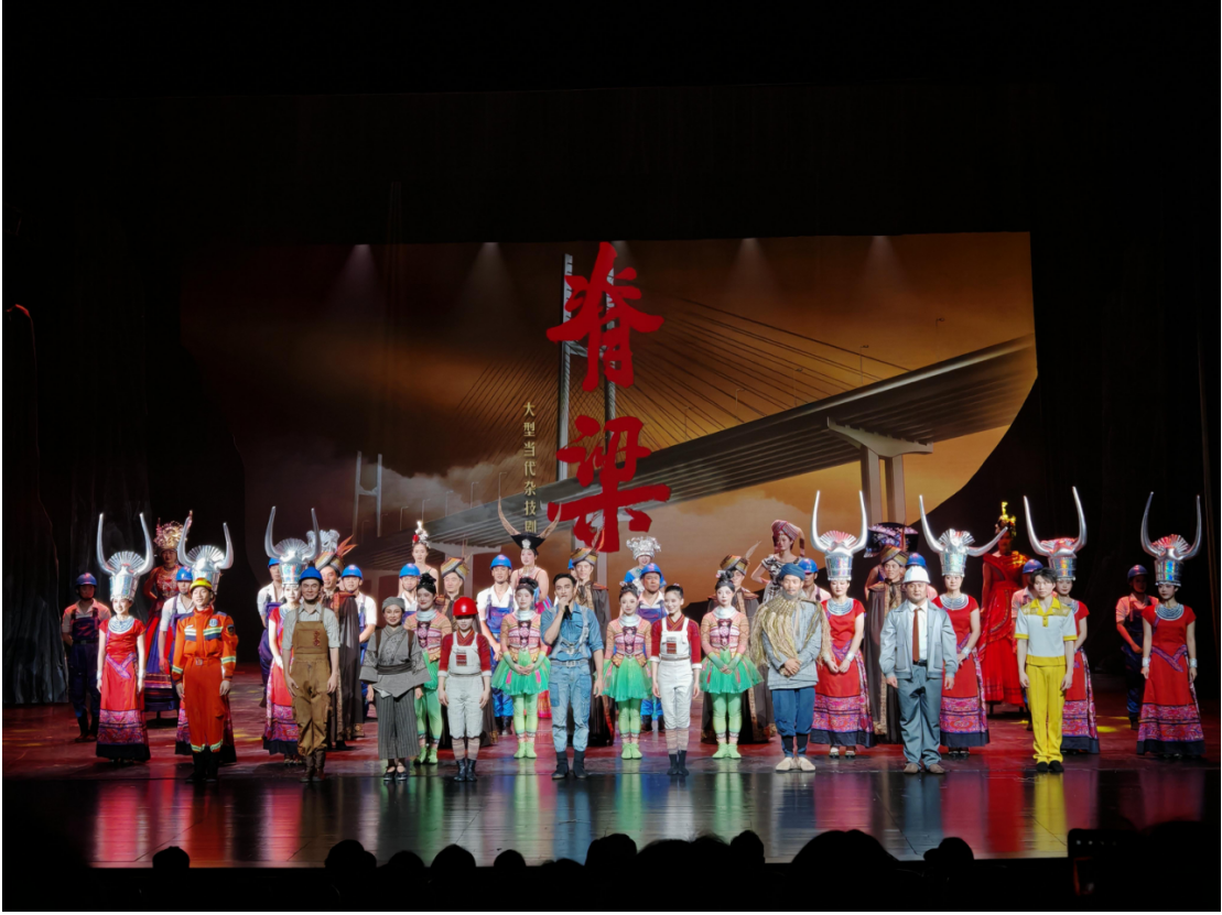 值得关注的是,本年度音乐舞蹈学院与贵州省杂技团建立实习合作机制,2022级多名舞蹈专业学生深入杂技团开展专业实习,并凭借扎实的舞蹈功底与刻苦的训练态度,成功参与到《脊梁》的演出中。当晚,这些实习学子在舞台上与杂技团演员默契配合,无论是肢体控制、节奏把握,还是与剧情情感的融合,都展现出舞蹈专业学子的良好素养,成为舞台上一道亮眼的青春风景线。他们将课堂所学与杂技艺术实践相结合,不仅提升了自身综合表演能力,更搭建起舞蹈与杂技艺术跨界交流的桥梁。