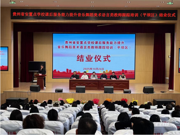 2025年10月21日至24日,音乐舞蹈学院中小学美育教研团队受贵州省青少年活动中心邀请,担任“贵州省安置点学校课后服务能力提升音乐舞蹈美术语言类教师跟踪培训(平坝区)”项目任课教师。此次培训活动围绕提高教师课后服务能力,提高教师开展“贵青杯”活动的组织能力和校园舞蹈编排教学能力展开。