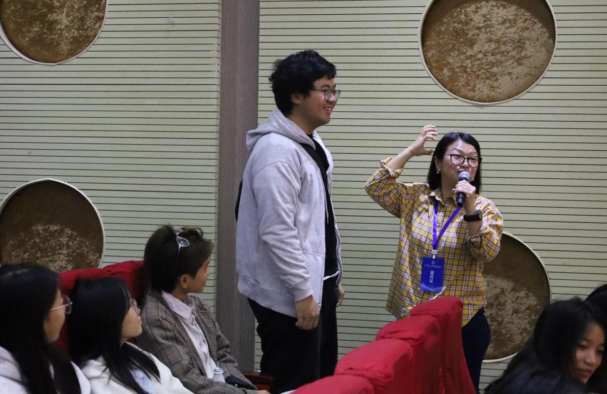 为让每位同学都深度参与,黄慧怡博士多次走下讲台与学生互动,通过节奏问答、即兴模仿、小组协作等形式引导大家主动探索。同学们在她的带领下,用名字音节编排打击乐片段,以肢体动作呼应旋律起伏,在游戏化的氛围中完成了从“听众”到“参与者”的转变,真切体会到奥尔夫教学法“弱化技巧、强调整体艺术体验”的精髓 。现场时而响起整齐划一的节奏律动,时而迸发创意十足的即兴表演,充分展现了音乐教育的包容性与趣味性。