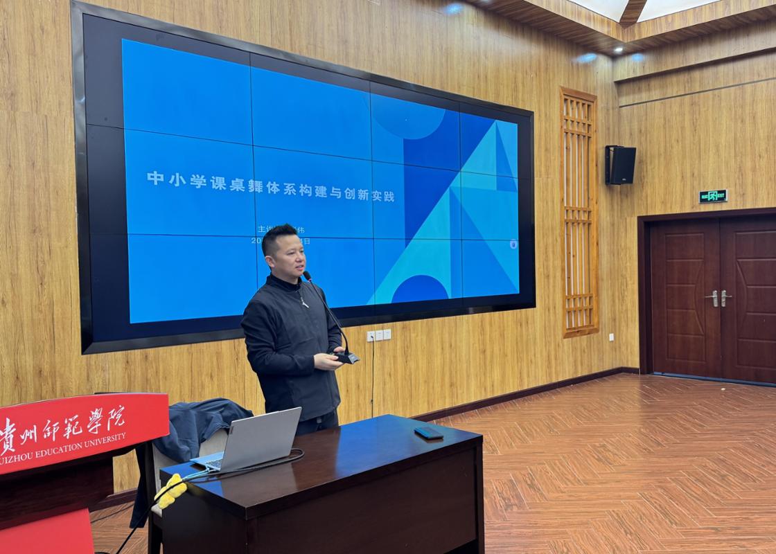 本网讯 2025年11月24日,首届中小学课桌舞教程培训暨全国中小学舞蹈美育创新实践研讨会开班仪式在印山书院二楼山骨讲堂隆重举行。全国各地的中小学教育工作者汇聚于此,共同开启一场以课桌为载体、以美育为核心的创新教育探索征程。开班仪式由音乐舞蹈学院苏桂玉老师主持。