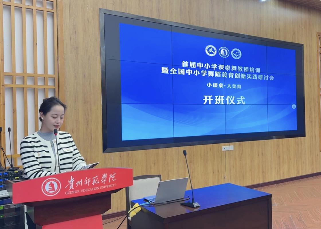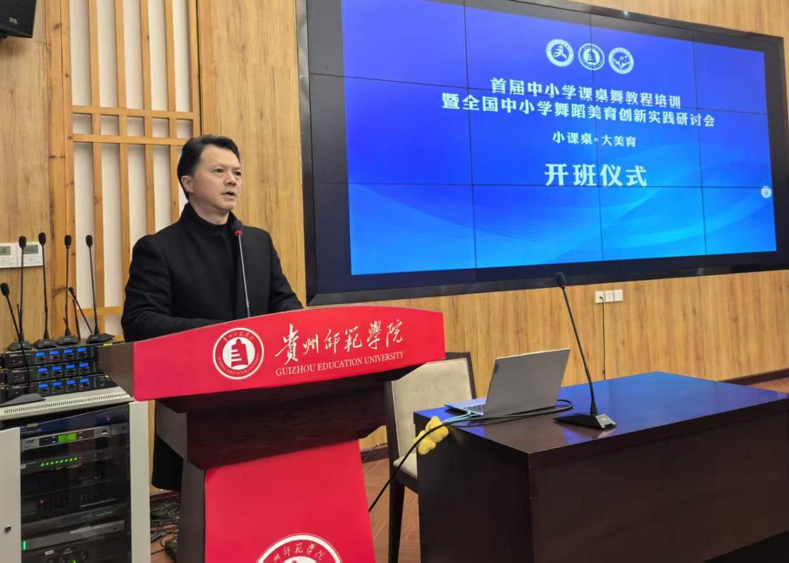 音乐舞蹈学院院长马关辉教授出席开班仪式并致辞。他强调,音乐舞蹈学院始终致力于服务基础教育、推动舞蹈美育研究,本次活动既是高校与中小学携手共建“美育共同体”的关键举措,也是“五育并举”的生动实践。希望大家以活动为契机,精研教程、切磋教法;以研讨为桥梁,碰撞思想、凝聚共识,让课桌舞真正成为以美育人、以文化人的鲜活载体。